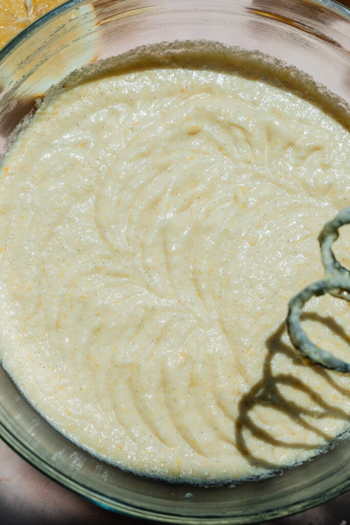 Step 4: Make the Lemon Mascarpone Frosting. In a large bowl, beat the butter on high speed until creamed. Mix in the powdered sugar, lemon juice, lemon zest, vanilla, and mascarpone.