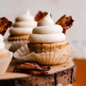 - Cake Mix – In a pinch, use your favorite cake mix for the cupcakes and then decorate with the homemade maple frosting and candied bacon.